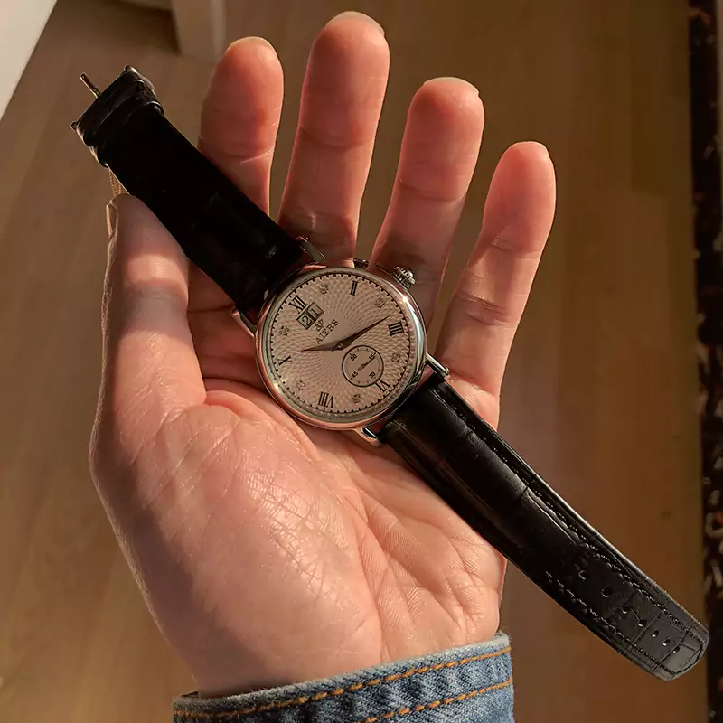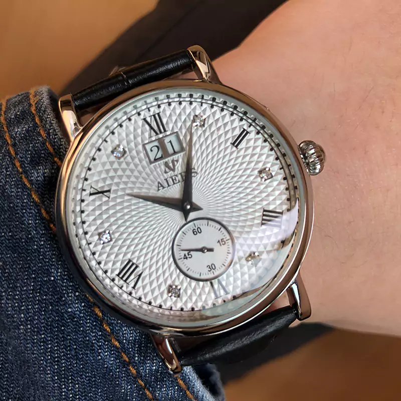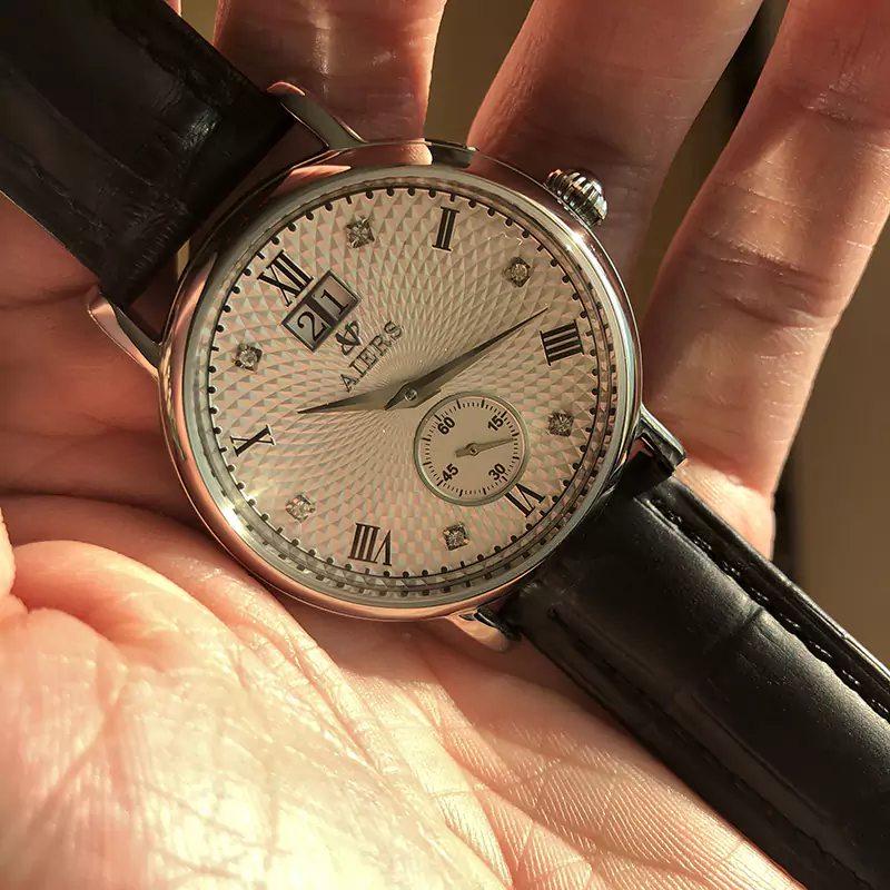 艾尔时手表厂生产的精钢腕表所有可触及部件都选用304或316等优质钢材制造。这类精钢具有抗腐蚀强、持久耐用的优点。