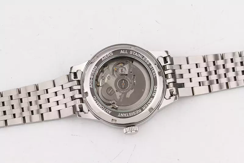 艾尔时手表厂生产的精钢腕表所有可触及部件都选用304或316等优质钢材制造。这类精钢具有抗腐蚀强、持久耐用的优点。