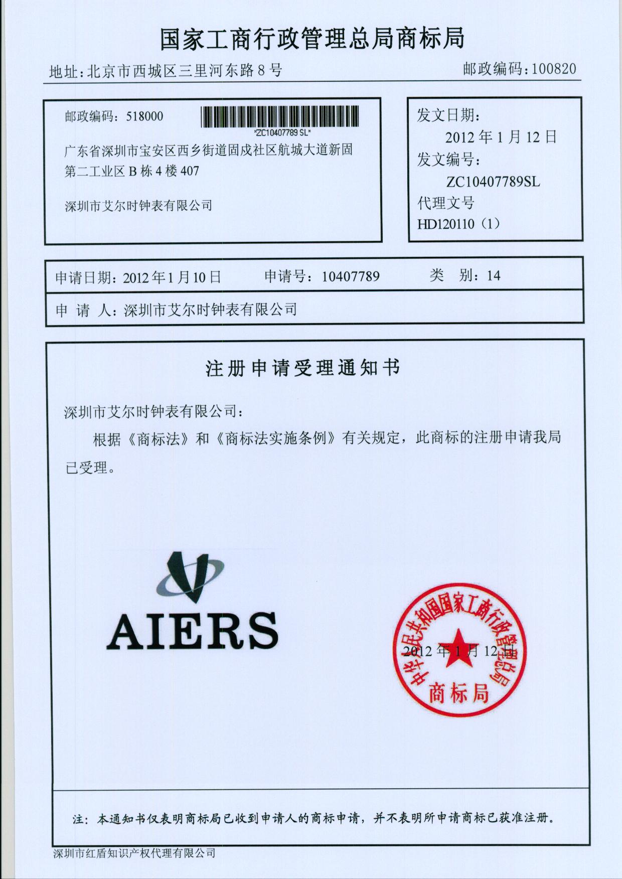 AIERS商标注册证